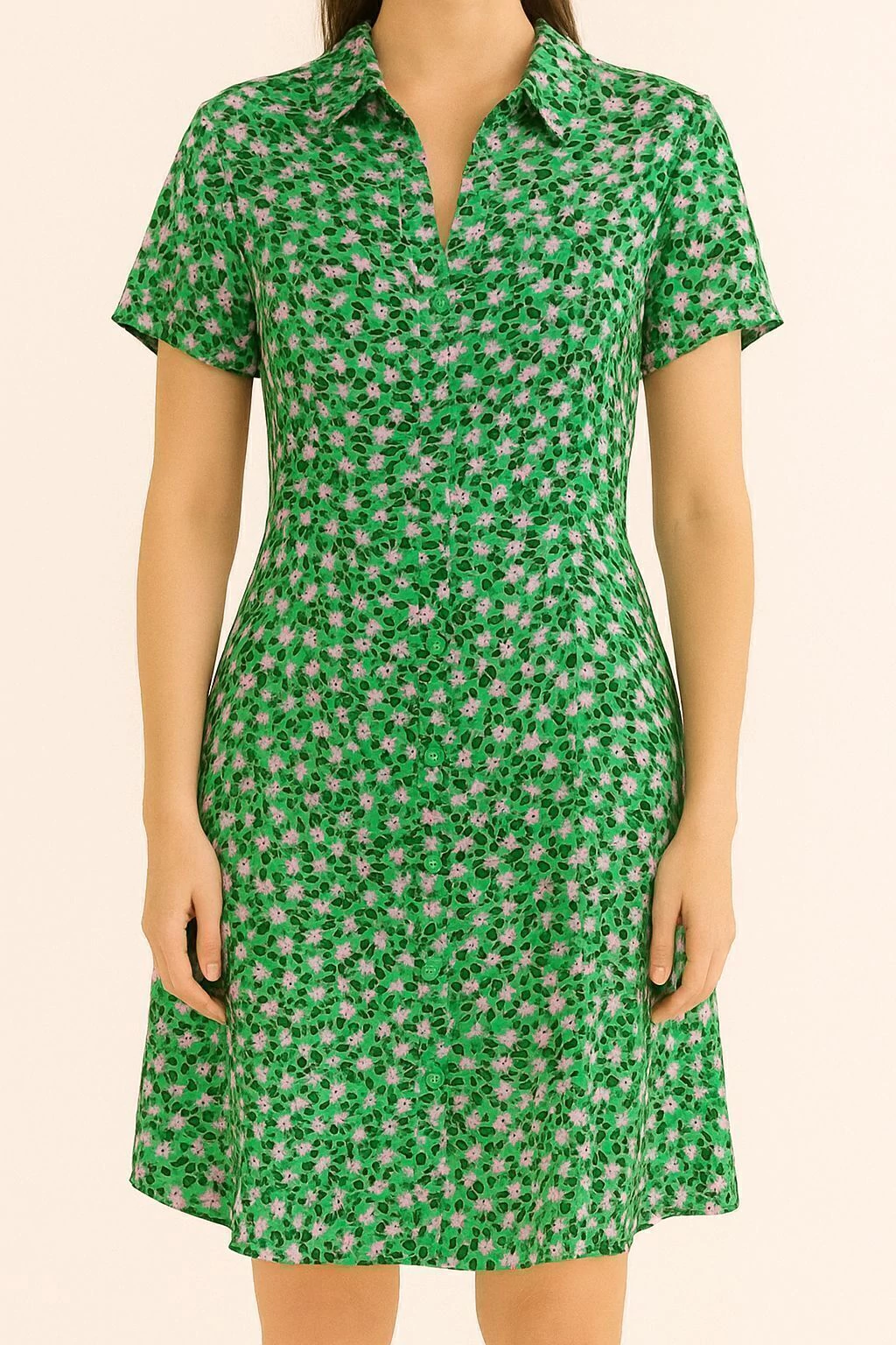 Perfecto para quienes buscan una opción que destaque por su sencillez y buen gusto, el Vestido verde floreado es una elección imprescindible para renovar tu guardarropa con clase y frescura.