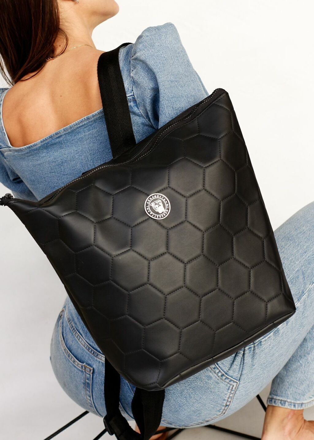 Su diseño en eco cuero liso con detalles de rombos no solo es elegante, sino también amigable con el medio ambiente. ¡Cero culpa y mucho estilo!