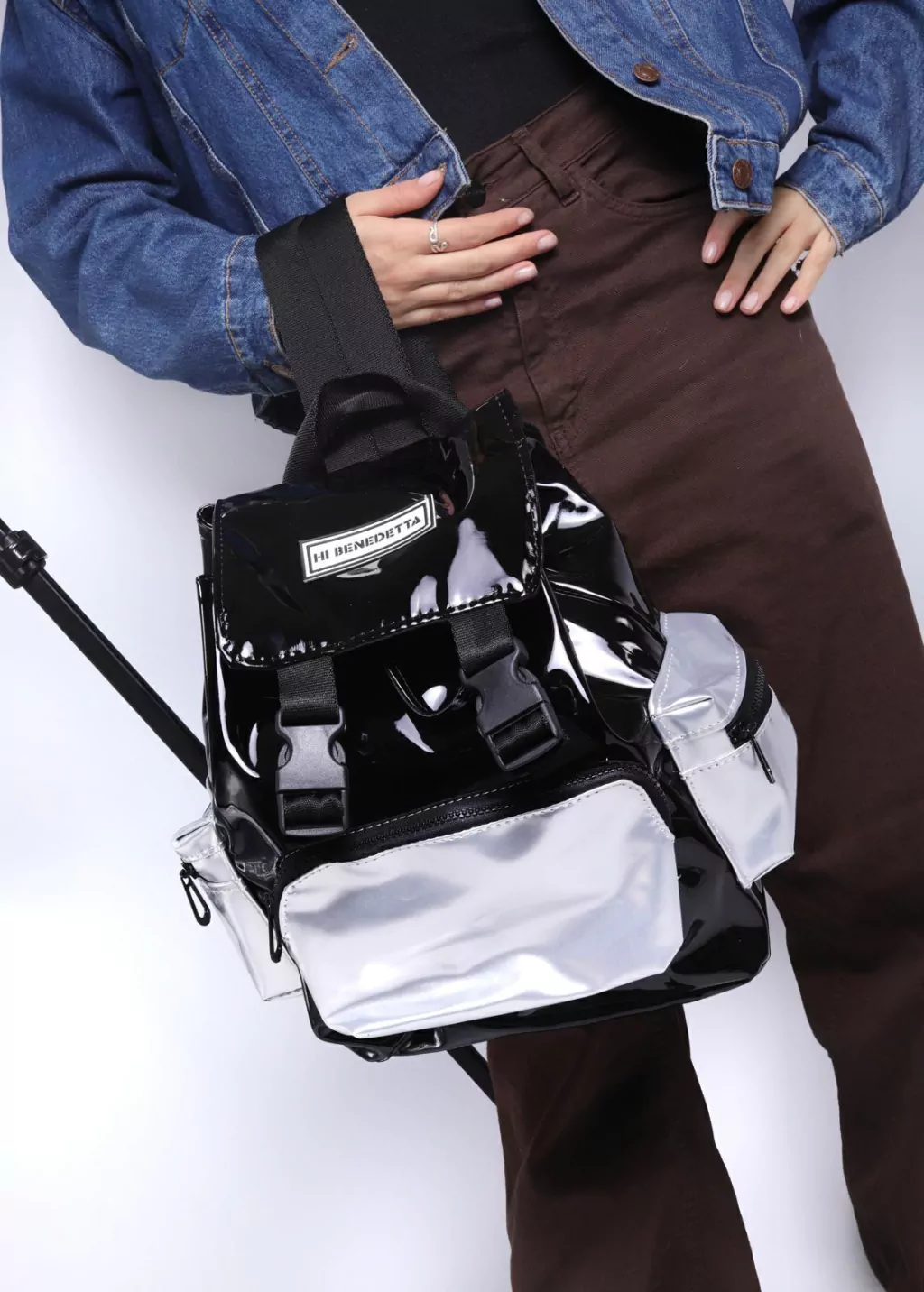 Descubre la elegancia y funcionalidad de la Mochila Cata. Confeccionada en p.u negro de la línea cruelty free, esta mochila combina estilo y conciencia ambiental.